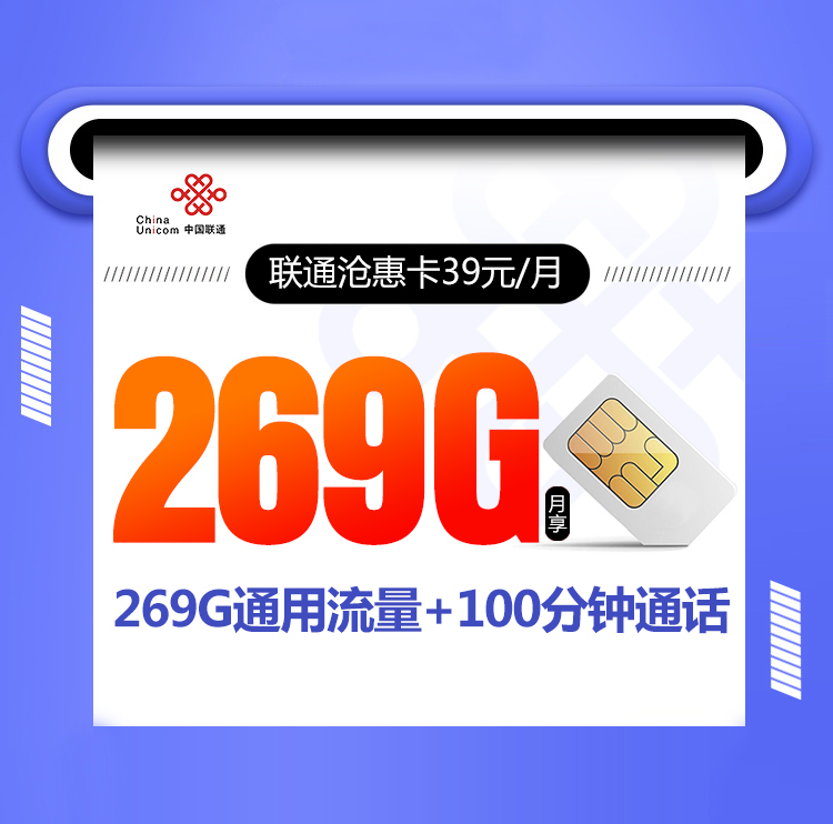 产品套餐:联通沧花卡19元/月50G+300分钟通话●月租:19元/月首月10元一次性扣除,激活当天先按39元扣费,月底27号左右返29元,首月实际:10元享50G流量【20G通用流量+30G定向流量