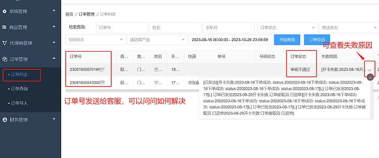 审核不通过”把订单号发送给客服,问问解决方法。(找渠道经理要客服)