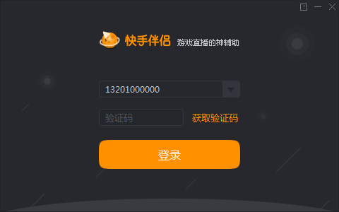 快手直播伴侣安装完成后,程序会自动弹出登录框,此时只要输入您绑定快手账号的手机号码以及手机接收的验证码,就能快速登录到直播伴侣了。