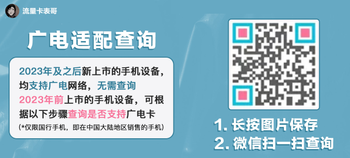 但是,一定要看看自己的手机是不是适配广电网络,23年之后的手机都适配,23年之前的重点看一下。