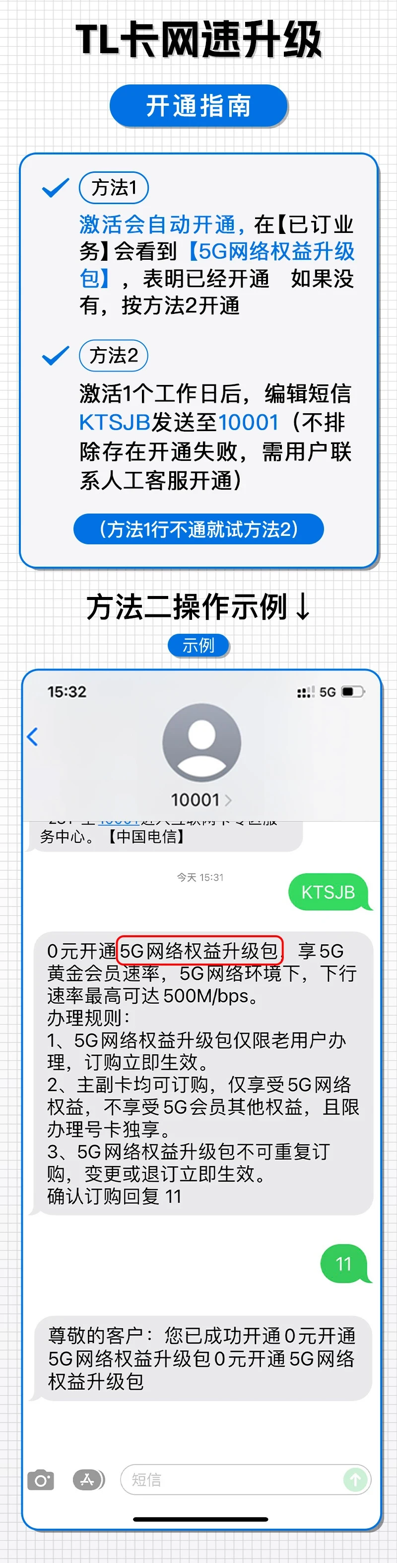 TL卡的免费升级畅享速率的表哥放在下面了,建议激活第2天再尝试下面的方法升级网速,成功率会更高一点。