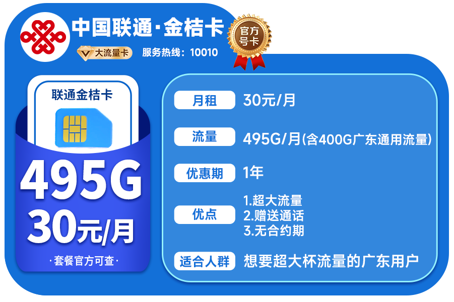 广东超大流量“金桔卡”