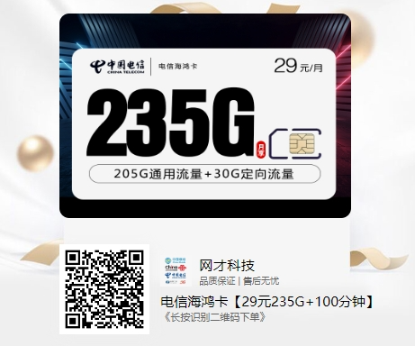 优惠后资费:29元/月=205G通用+30G定向+100分钟