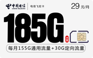 产品套餐:29元155G通用+30G定向 其中50G通用次月初到账 首月免月租 激活选号 长期套餐注意事项建议收藏办卡链接,可实时查询办卡进度如审核失败可根据提示选择其他套餐或运营商重新申请领取方式点