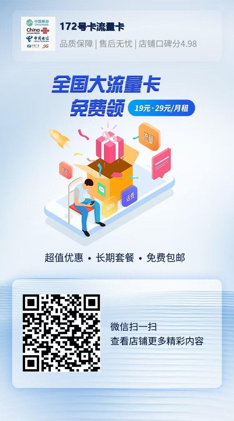 在竞争激烈的手机流量卡市场中,要想迅速崭露头角,就需要有精准的市场定位和独特的卖点。172号卡流量卡,作为一种新兴的流量卡品牌,凭借其卓越的品质和优势,正在迅速在分销领域崭露头角。 首先,172号卡